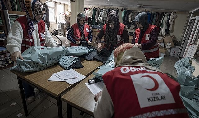 Ramazan boyunca Kızılay Şubesi'nde bulunan depoda uzun saatler çalışan gönüllü kadınlar, evlerindeki iftar hazırlıklarını yardım çalışmalarından sonra yaparak fedakarlık gösteriyor.