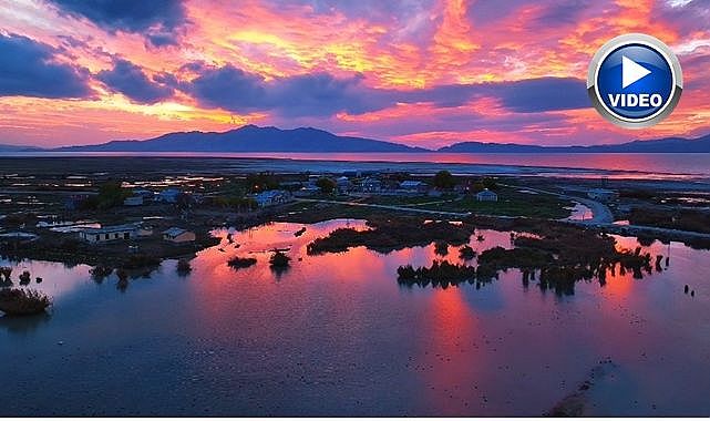 "Gökyüzü kızıl ve altın rengine büründü" Akşam saatlerinde güneşin ufukta kaybolmaya başlamasıyla birlikte gökyüzü, tabloya dönüştü. Kızıl ve altın sarısı tonların hakim olduğu bu anlarda, ışık oyunları göl yüzeyine yansıyarak eşsiz bir görsel şölen sundu. Görüntüleri kaydeden doğa fotoğrafçısı Dağ, dron ile göl üzerinde alçak ve yüksek irtifada gezdirerek manzarayı farklı açılardan kaydetti. Özellikle su yüzeyindeki yansımaların netliği ve gökyüzündeki bulutların renklerle dansı, dron kadrajına adeta bir sanat eseri gibi yansıdı.