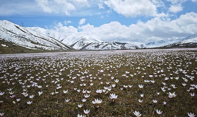 Bu yıl yoğun kar yağışının ardından Bitlis’teki ova ve vadilerde baharın müjdecisi çiğdem çiçekleri yoğun bir şekilde açmaya başladı. Özelikle Tatvan ve Hizan ilçeleri arasındaki Güzeldere Vadisi'ndeki sulak alanlarda yoğun bir şekilde açan çiğdemler, karlı dağlarla birlikte hayranlık uyandıran görüntüler sunuyor. Doğanın canlanması ile birlikte açan beyaz ve pembe renkteki çiğdem çiçeklerinin Güzeldere Vadisi’nde oluşturduğu manzara havadan dron ile görüntülendi.
