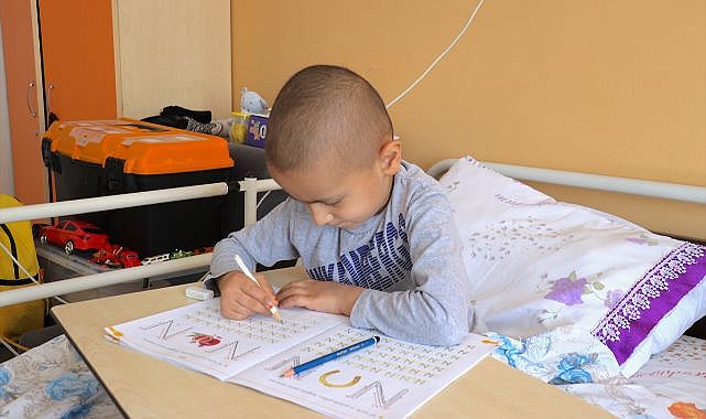 Haftanın 7 günü Van YYÜ Dursun Odabaş Tıp Merkezi'ne giden öğretmenler, verdikleri eğitimle minik öğrencinin derslerinden geri kalmamasını sağlıyor, etkinlikler yaparak tedavi sürecinde moral ve motivasyonunun artmasına katkı sunuyor.