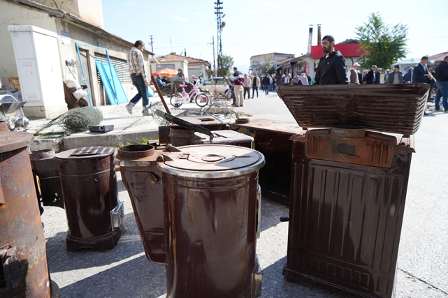 Doğal gaz, elektrikli ısıtıcılar gibi teknolojiye yenik düşen mesleğin son temsilcileri, Erzincan Buğday Meydanı ikinci el pazarında geçmişten günümüze gelen ve eskiyi hatırlatan sobacılığı yaşatmaya çalışıyor.