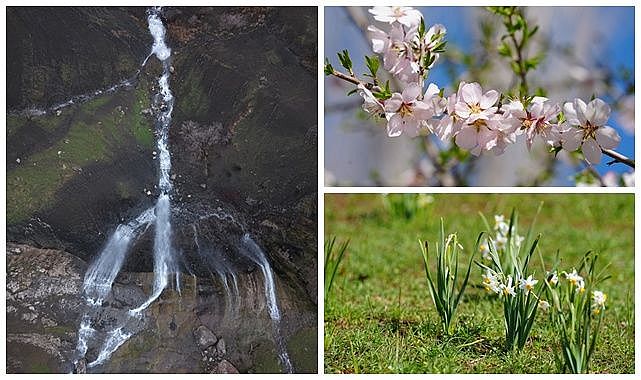 Baharın gelişiyle bölgede nergis çiçekleri açtı, badem ağaçları da beyaz çiçekleriyle doğayı renklendirdi.