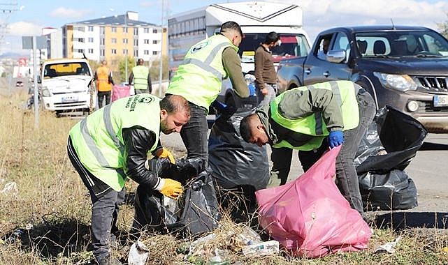 Ekiplerin son durağı olan hastane yolu güzergâhındaki yoğun temizlik çalışmalarını yoldan geçen araç sürücüleri destekledi.