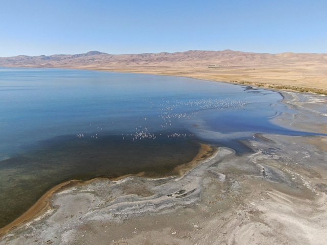"1995 yılından itibaren gölde yaklaşık 6 kilometrekarelik bir alanın şu anda tamamen karaya çıkmış" Şubat ayını dikkate alırsak kar yağışında yüzde 60'lık bir azalma meydana geldiğini ifade eden Akkuş, "Geçmişte 10 damla yağış düşerken maalesef Şubat ayında sadece 4 damla kar yağışı düştü. İşte Şubat ayındaki bu kar yağışının azlığının etkilerini içerisinde bulunduğumuz aylarda çok yoğun bir şekilde görüyoruz. Havzada her ne kadar Van Gölü ön plandaysa da Van Gölü'nden sonra havzadaki en büyük göl Erçek Gölü'nü oluşturuyor. Ve Erçek Gölü önemli balıkçılık alanlarından birisi. Özellikle su kuşları, flamingolar için çok çok önemli bir beslenme ve yaşam habitatını oluşturuyor. oluşturuyor. Fakat uydu görüntülerini incelediğimiz zaman kar yağışındaki azlığın ve yaz aylarındaki sıcaklığın mevsim normallerinde yüksek seyretmesinden Erçek Gölü'de maalesef olumsuz bir şekilde etkilenmiş. Özellikle 1995 yılından itibaren Göl'de yaklaşık 6 kilometrekarelik bir alanın şu anda tamamen karaya çıkmış bir vaziyette ve çatlamış beyaz topraklarda oluşuyor. Erçek Gölü havzada önemli bir göl. Çünkü gölün yüzde 30'luk kısmı sığ alanlardan oluşuyor. Bu sığ alanlar özellikle flamingolar için adeta bir beslenme yuvası, beslenme habitatı. Diğer kuşlar için üreme alanlarını oluşturuyor. Bütün umutlarımız önümüzdeki kış ayında yani 2026 yılının ümit ediyoruz ki kış mevsimi bol kar yağışlı geçer. 2026 yılı kış ayı da 2025 yılındaki gibi geçerse biz Van Gölü ve Erçekgölü'nün biraz daha geriye doğru çekildiğini göreceğiz" diye konuştu. İHA