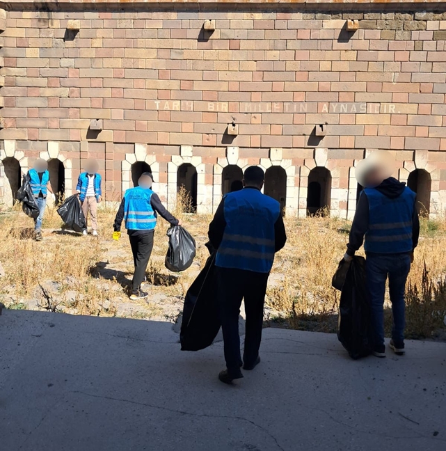 Yakutiye ilçesi Gökçeyamaç Mahallesi sınırlarında, 1910 metre rakımlı tepe üzerinde yer alan tabyada iki hafta süren çalışmalara, Denetimli Serbestlik kapsamında “kamuya yararlı bir işte ücretsiz çalıştırılma yükümlülüğü” bulunan 15 yükümlü ile Dumlu Açık Ceza İnfaz Kurumu’ndan 15 hükümlü katıldı.