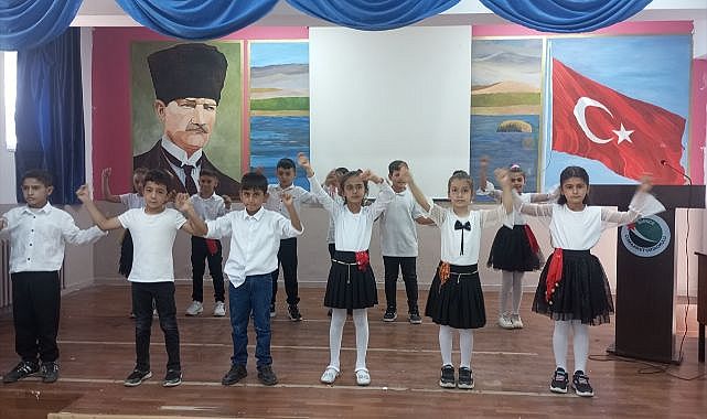 Cumhuriyet Ortaokulu Konferans Salonunda düzenlenen törende saygı duruşunda bulunuldu, İstiklal Marşı okundu.