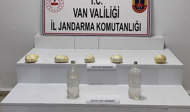 Van İl Jandarma Komutanlığı ekipleri, uyuşturucu tacirlerine yönelik çalışmalarını aralıksız sürdürüyor. Çalışmalar çerçevesinde Narkotik Suçlarla Mücadele Şube Müdürlüğü, Kaçakçılık ve Organize Suçlarla Mücadele Şube Müdürlüğü, İstihbarat Şube Müdürlüğü, Başkale İlçe Jandarma Komutanlığı ve Başkale Komando Tabur Komutanlığı tarafından Esenyamaç Mahallesi mevkisinde icra edilen operasyonda 4 kilo 580 gram asetik asit anhidrit olduğu değerlendirilen madde ile 3 kilo 88 gram sodyum hidroksit maddesi ele geçirilerek muhafaza altına alındı. Şüpheli hakkında adli işlem yapıldı.