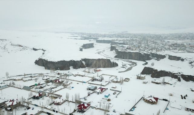Kilometrelerce uzunlukta, yer yer 50 metre yüksekliğe sahip sarp kayalıklar ve üzerindeki evlerin bulunduğu kanyon, son günlerde yoğun kar yağışıyla beyaza büründü.