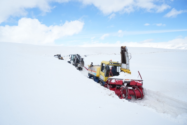 Muş İl Özel İdaresi ekipleri, kış mevsimi boyunca etkili olan yoğun kar yağışı ve fırtına sonrası kapanan alternatif köy yollarında ulaşımın sağlanması için çalışmalarını sürdürüyor. Özellikle 2 bin 500 rakımlı Derecik-Ilıca-Ağıllı grup köy yolunda zorlu bir mücadele veren ekipler, kar kalınlığının yer yer 5 ila 6 metreyi bulduğu bölgede yol açma çalışması yürütüyor. Çığ riskine rağmen büyük bir titizlikle çalışan ekipler, bazı noktalarda 100 metrelik yolu ancak 4 saatte ulaşıma açabiliyor.