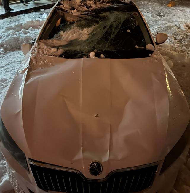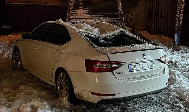 Edinilen bilgilere göre, şehir merkezinde bir binanın çatısında biriken kar kütlesi aniden koparak aşağıya düştü. O sırada bina önünde park halinde bulunan otomobilin üzerine düşen ağır kar yığını aracı adeta hurdaya çevirdi.