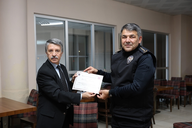 Program kapsamında öğrencilerle bir araya gelen Karaburun, soruları yanıtladı ve konuyla ilgili değerlendirmelerde bulundu. Söyleşi sonunda Hukuk Fakültesi Dekanı Prof. Dr. Reşat Karcıoğlu, İl Emniyet Müdürü Karaburun’a katkılarından dolayı teşekkür belgesi takdim etti.