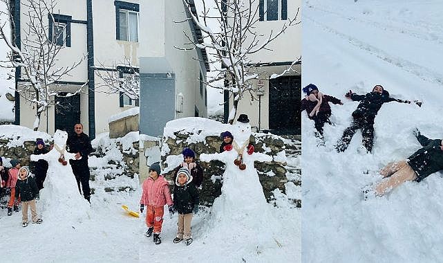 Hakkari’de etkili olan yoğun kar yağışı hayatı olumsuz etkilerken, il genelinde 305 köy ve mezra yolu ulaşıma kapandı. Kapalı yolların yeniden ulaşıma açılması için İl Özel İdaresi ekiplerinin karla mücadele çalışmaları aralıksız sürüyor. Kar yağışına en çok sevinenler ise çocuklar oldu. Karşıyaka Mahallesi’nde yaşayan Yunus Ertuş, çocukların isteğini kırmayarak onlarla birlikte kardan adam yaptı. Mahallede büyük mutluluk yaşayan çocuklar, yaptıkları kardan adamın önünde hatıra fotoğrafı çektirerek karın keyfini çıkardı.