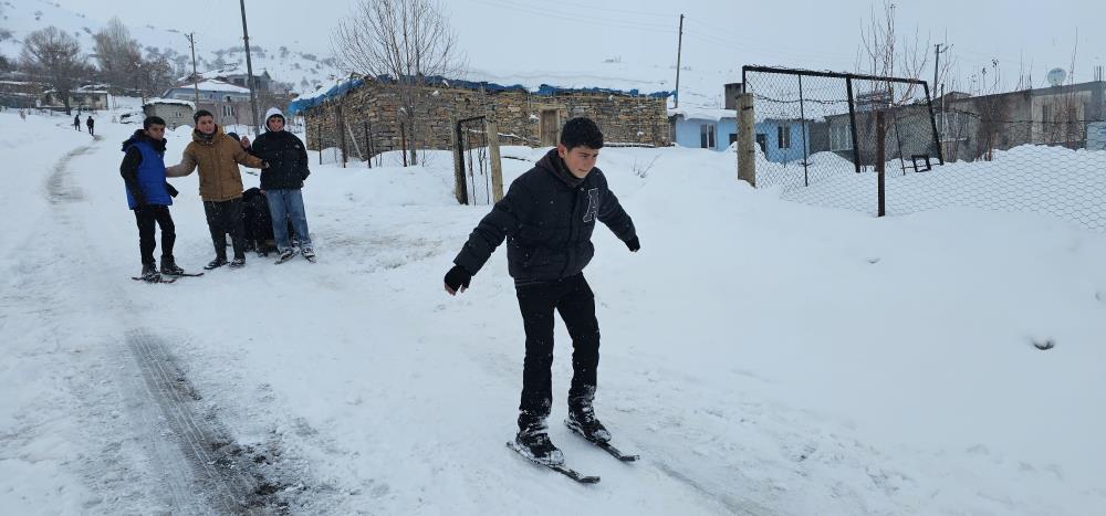 Muş'ta kırsal kesimde etkili olan kar yağışı, çocuklar için eğlenceye dönüştü. Hasköy ilçesine bağlı Dağdibi köyünde yaşayan çocuklar, kendi imkânlarıyla yaptıkları el yapımı demir patenlerle köyün yokuşlu yollarını adeta kayak pistine çevirdi. Renkli görüntülerin oluştuğu anlarda çocukların mutluluğu yüzlerine yansıdı. Zaman zaman yolların kar temizleme ekipleri tarafından açılması nedeniyle üzüldüklerini dile getiren çocuklar, buna rağmen fırsat buldukça farklı alanlarda kayarak karın tadını çıkarmaya devam ediyor.