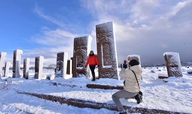 Kar yağışı sonrası mezarlığı ziyaret eden gezgin ve fotoğrafçılar da ortaya çıkan eşsiz manzaraları hem izliyor hem de fotoğraflıyor.