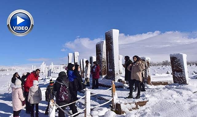 UNESCO Dünya Kültür Mirası geçici listesinde yer alan dünyanın en büyük Türk İslam Mezarlığı olma özelliğine sahip Ahlat Selçuklu Meydan Mezarlığındaki tarihi mezar taşlarının karla bütünleşmesi görenleri kendine hayran bırakıyor. 'Anadolu’nun Orhun Abideleri' olarak da adlandırılan 210 dönüm alanda kurulu Ahlat Selçuklu Meydan Mezarlığındaki mezar taşının üzerindeki yazılar, kabartmalar, nakış ve işlemeler, karla bütünleşince seyrine güzel görüntüler oluştururken ziyaretçilerden de yoğun ilgi görüyor.