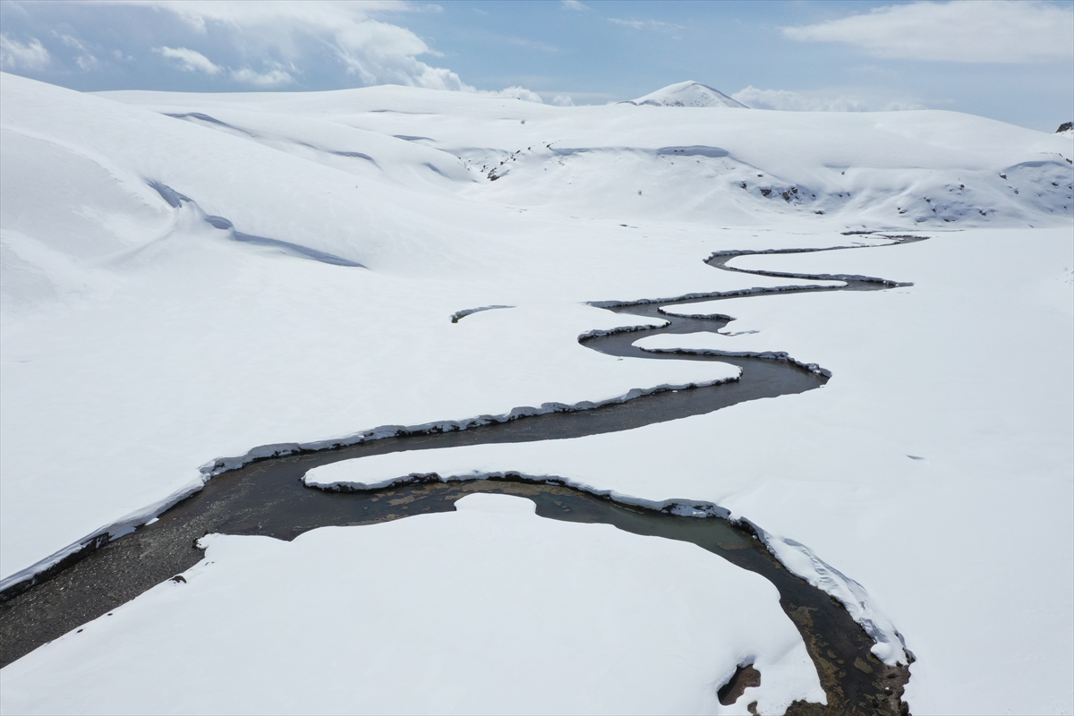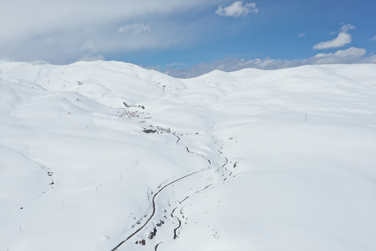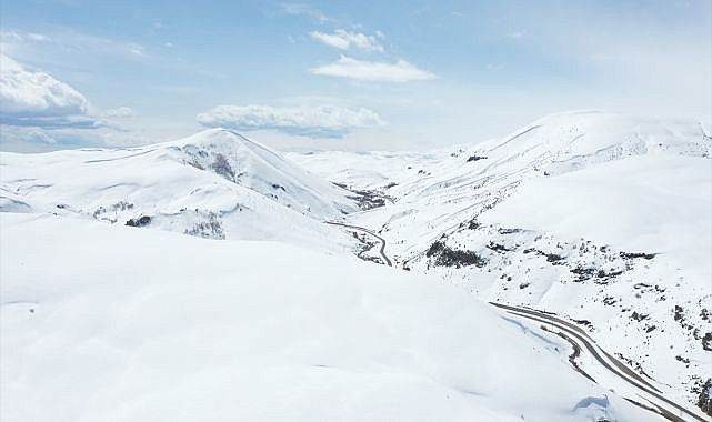 Dağları örten kar örtüsü, güzel manzaralar oluşturdu. Karlı dağlar, dronla görüntülendi.