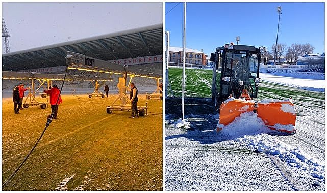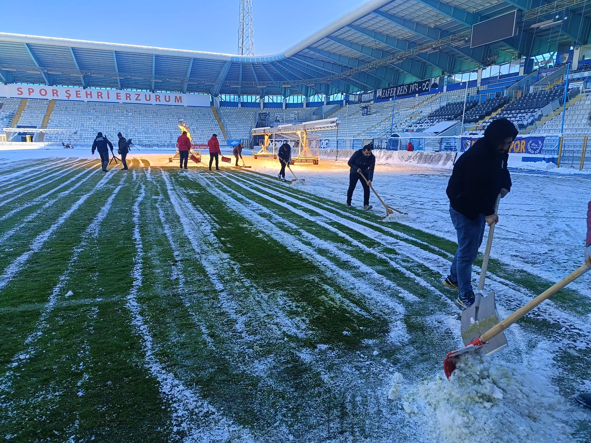 Erzurum’da amatör futbol maçlarının oynandığı 3 Temmuz Stadyumu’nda da çalışmalar sürüyor. Kar yağışlarının ardından maçlarının aksamaması ve zamanında oynaması için Gençlik ve Spor İl Müdürlüğü personeli gerek kar temizleme makineleri gerek ise küreklerle stadyumu kardan arındırarak stadyumu maçlara hazır hale getiriyor.