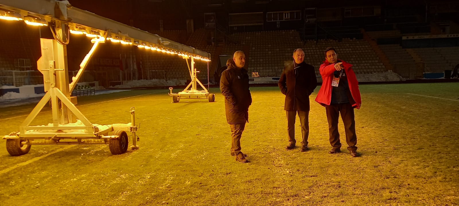 Çakmur açıklamasını şu sözlerle sürdürdü: “Bu sistemle birlikte yapay gün ışığı uygulamasını sürekli olarak devrede tutuyoruz. Çimin ihtiyaç duyduğu ışığı düzenli şekilde almasını sağlıyor, gelişimini kontrollü bir biçimde sürdürüyoruz. Hibrit çimin üzerinde yer alan halı örtüsü sayesinde sıcaklık farklarını en aza indiriyoruz. Bu örtü, sıcak ve soğuk hava etkileşimini azaltıyor, buharlaşmayı önlüyor ve don riskini büyük ölçüde ortadan kaldırıyor. Kar yağışı durumunda da zeminde donma ya da çim yanması gibi olumsuzlukların yaşanmasını beklemiyoruz. Elbette hava şartlarının ne olacağını önceden kestirmek mümkün değil ancak mevcut koşullarda yapılması gereken tüm önlemleri Kazım Karabekir Stadyumu’nda eksiksiz şekilde uyguluyoruz. Hibrit çimi Erzurum’da ilk kez denememize rağmen şu anki görüntü ve çimin sağlığı bizi son derece memnun ediyor. Çimimiz gayet sağlıklı, kaliteli ve maç oynamaya son derece elverişli durumda” ifadelerini kullandı.