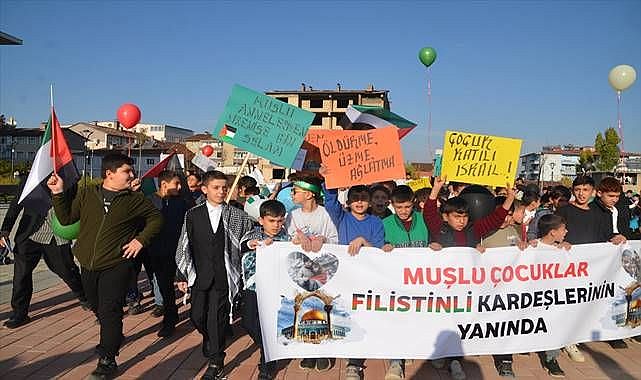 Muş'ta çocuklar, İsrail'in Gazze'ye düzenlediği saldırılarda hayatını kaybeden çocuklar için yürüyüş yaptı.