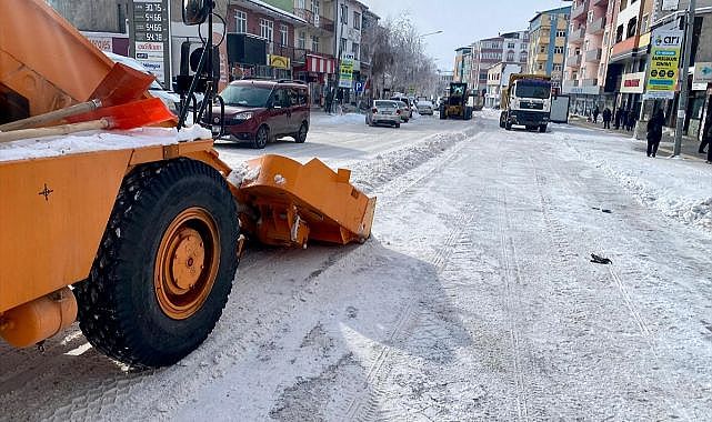 Olumsuz hava koşulları nedeniyle cadde ve sokaklarda oluşan buz ve kar kütleleri için belediye ekiplerince temizlik çalışması başlatıldı.