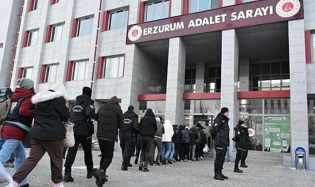 Erzurum Cumhuriyet Başsavcılığı koordinesinde İl Emniyet Müdürlüğü Siber Suçlarla Mücadele ve İstihbarat Şubesi ekiplerinin ortaklaşa yürüttükleri çalışmalarda, yakalanan 71 zanlının emniyetteki işlemleri tamamlandı. Zanlılar, sağlık kontrolünden geçirildikten sonra güvenlik önlemleri altında Erzurum Adliyesine çıkarıldı.