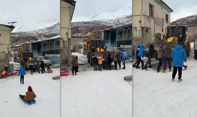 Tuzlama çalışmasının başlamasıyla birlikte kızak keyfinin sona ereceğini anlayan çocuklar, kızak yollarını korumak için kepçenin önünde durarak çalışmayı engellemeye çalıştı. Kepçe operatörü ise yol güvenliği açısından tuzlama yapılmasının gerekli olduğunu anlatarak çocukları ikna etmeye çalıştı.