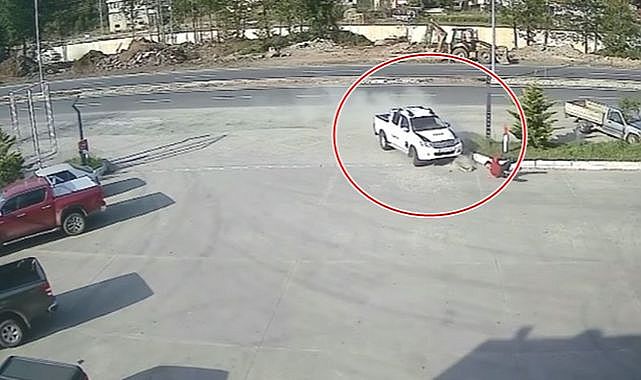 O anlar güvenlik kamerasına saniye saniye yansıdı. Görüntülerde, Yüksel Gaz'ın istasyon önünde beklediği sırada üzerine gelen aracın çarpması ve çarpmanın etkisiyle savrulması yer alıyor.