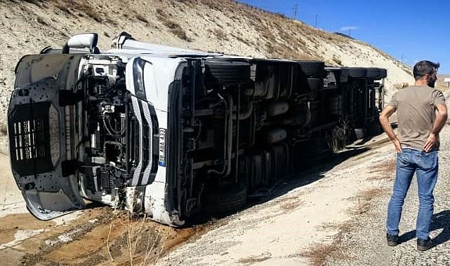 Erzurum’un Tortum yolu 40. kilometresinde meydana gelen trafik kazasında, sürücüsünün kontrolünü kaybettiği tır yol kenarındaki refüje yan yattı. Kazada ölen ya da yaralanan olmazken, araçta maddi hasar meydana geldi.