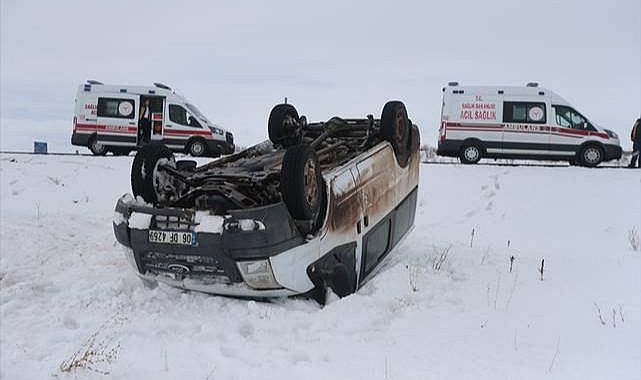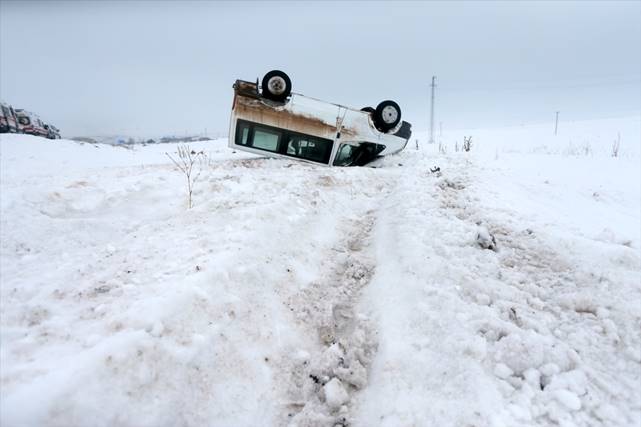 Gudbettin Demir idaresindeki 06 DF 4269 plakalı köy minibüsü, Kars-Digor kara yolunun TOKİ mevkisinde yoldan çıkıp karlı arazide ters döndü.