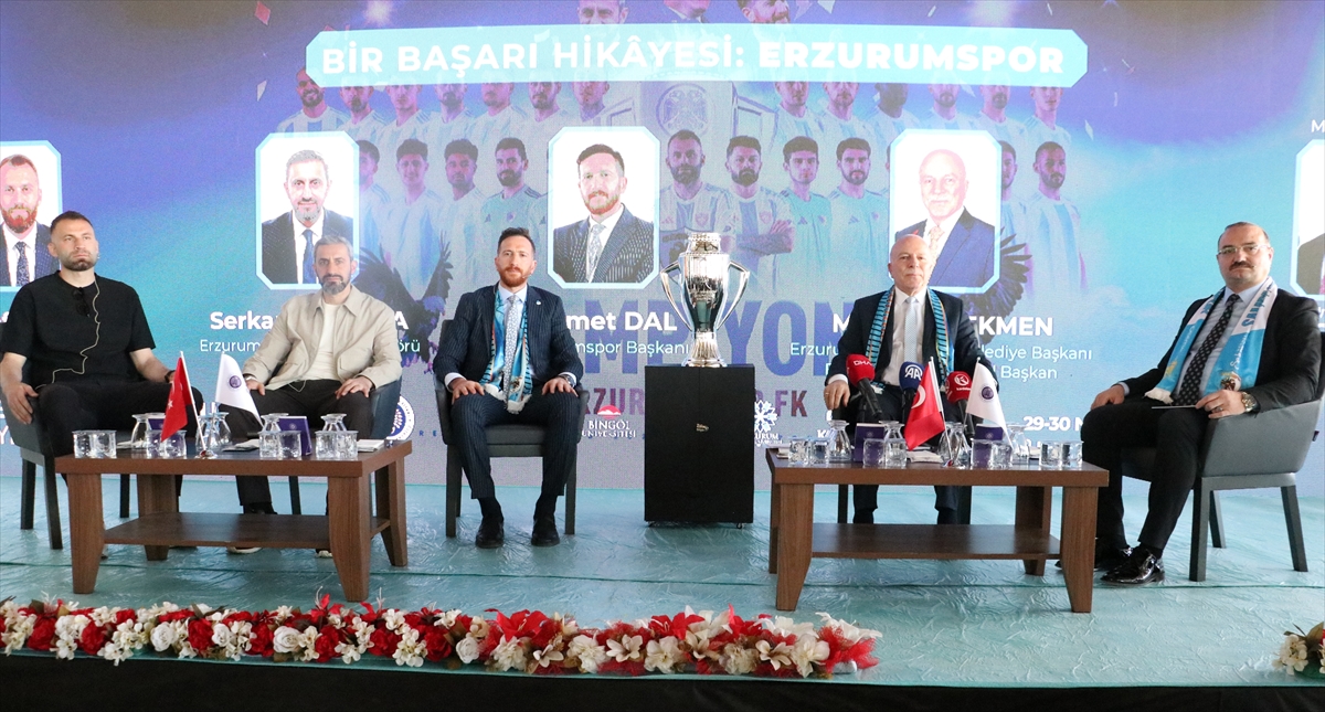 Moderatörlüğünü Atatürk Üniversitesi Rektörü Prof. Dr. Ahmet Hacımüftüoğlu'nun yaptığı söyleşiye katılan Erzurumspor FK Onursal Başkanı ve Büyükşehir Belediye Başkanı Sekmen, kulüp başkanı Dal, teknik direktör Özbalta ve takım kaptanı Yumlu, mavi-beyazlı takımın Süper Lig'e yükselme hikayesini anlattı.