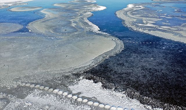 Soğuk hava nedeniyle Ağrı Dağı’nın eteklerindeki Bulakbaşı köyünde bulunan ve çok sayıda kuş türüne ev sahipliği yapan sulak alanlar tamamen dondu.