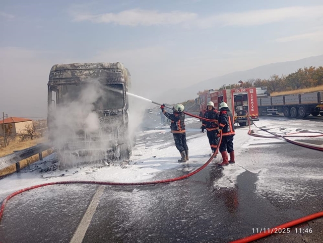 Olay, Malatya-Elazığ Karayolu Kale ilçesi mevkiinde meydana geldi. Edinilen bilgilere göre bölgede seyir halindeki inşaat malzemesi yüklü bir tırda henüz belirlenemeyen bir nedenle yangın çıktı. İhbar üzerine bölgeye itfaiye ekipleri sevk edildi. Yangın ekiplerin müdahalesiyle kontrol altına alarak yangını söndürdü. Olayda yaralanan olmaz iken araçta maddi hasar meydana geldi. Yangınla ilgili inceleme başlatıldı.