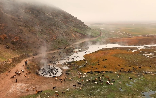 Yaklaşık 40 derece sıcaklıktaki kaplıca suyu, özellikle kış aylarında vatandaşlar tarafından hayvanların bakımında doğal bir temizlik yöntemi olarak kullanılıyor. Mandalar, kaplıcanın sıcak suyunda zaman geçirerek hem temizleniyor hem de kışın soğuk havasından korunuyor. Dronla kaydedilen görüntülerde, kaplıcada yoğun şekilde bulunan mandalar ve çevredeki diğer büyükbaş hayvanlar adeta Afrika savanlarını andıran bir manzara oluşturdu. Bölge halkı, her yıl tekrarlanan bu doğal ve sıra dışı manzaranın artık Budaklı’nın simgelerinden biri haline geldiğini belirtiyor.