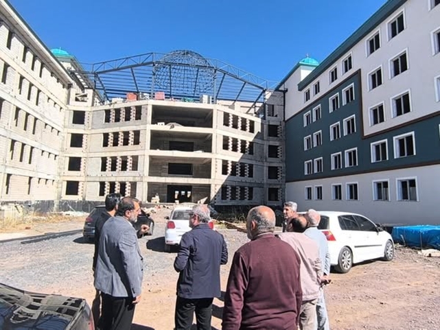 Müftü Çapçı, inceleme sırasında, aynı zamanda Mardin Eğitim Merkezi Müdürü ve merkezin sorumlusu olan Yunus Korkmaz’dan inşaat süreci ve yürütülen çalışmalar hakkında detaylı bilgi aldı.
