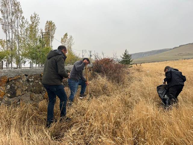 Ekinci, "Köyümüzün mezarlığının bahçe duvarını onardık, şimdi ise mezarlığı ağaçlandırıyoruz. Tüm ölenlerimize Allah rahmet eylesin" dedi.