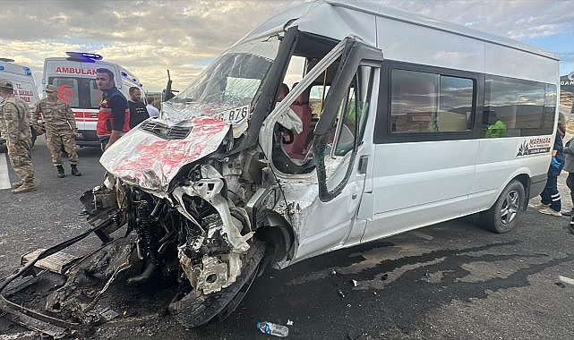 Erciş-Van kara yolunun Organize Sanayi Bölgesi Kavşağı'nda sürücülerinin ismi öğrenilemeyen 49 AAZ 631 plakalı tır ile 65 AAG 876 plakalı öğrenci servisi çarpıştı.