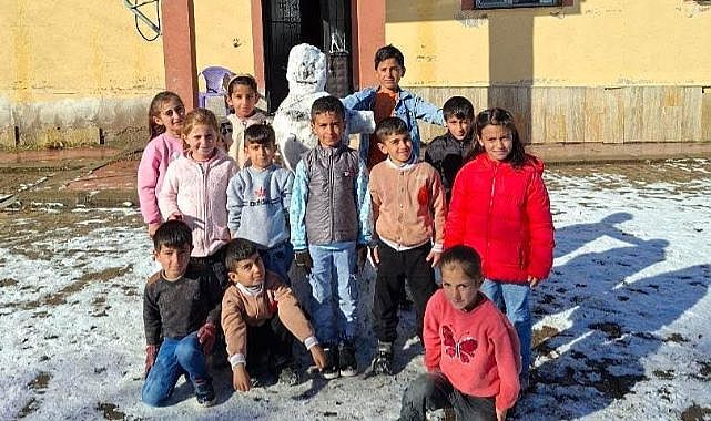 Patnos’un yüksek kesimlerinde mevsimin ilk karı etkili oldu. Süphan Dağı eteklerindeki Köseler Adilova İlköğretim Okulu sabah saatlerinde beyaz örtüyle kaplanırken, öğrenciler karın tadını çıkarmak için okul bahçesine çıktı. Topladıkları karlarla yılın ilk kardan adamını yapan öğrencilerin sevincine, Okul Müdürü Fatih Biçer de eşlik etti ve birlikte kardan adamın fotoğrafını çekti.