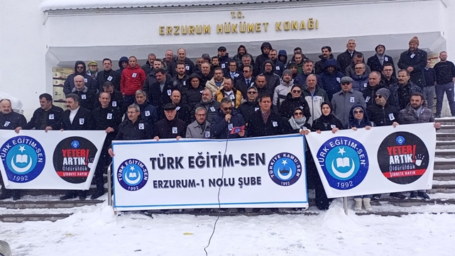 Erzurum Milli Eğitim Müdürlüğü önünde toplanan Türk Eğitim Sen 1 Nolu Şube üyeleri, şehit öğretmen için dua etti. Burada bir basın açıklaması yapan Türk Eğitim-Sen Erzurum 1 nolu Şube Başkanı Murat Meral, Türkiye ve eğitim camiasının son olayla
