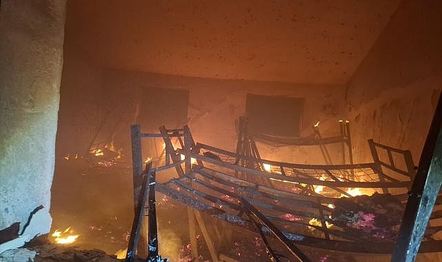 Savaşır köyünde devam eden AFAD konutlarında çalışan işçilerin kaldığı ancak kullanılmayan okul binasında henüz belirlenemeyen nedenle yangın çıktı.