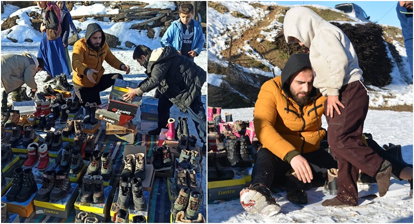 Ayakkabı hediye edilen köy çocukları ise kendilerini sevindiren ve ayakkabı hediye eden ağabeylerine teşekkür ettiler.iha