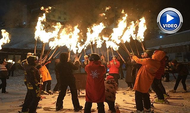 Kış turizminin gözde mekanlarından Erzurum Palandöken'de yılbaşı tatilini geçiren yerli ve yabancı misafirler, yeni yıla meşaleli kayak gösterisiyle girdi.