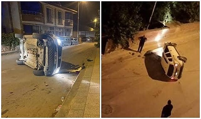 Park halindeki araçlara çarpıp devrildi!