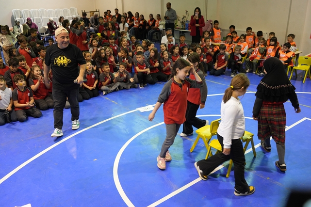 Cumhuriyet İlkokulu Spor Salonunda organize edilen etkinlikte, öğrencilere çevrenin önemi eğlenceyle anlatıldı. Plastik kirliliğine palyaço gösterileriyle, danslarla dikkat çekilen etkinlikte, bez çanta ve duvar boyama etkinlikleri yapıldı, fidan dikimi gerçekleştirildi.