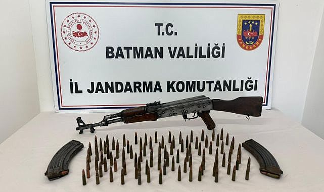 Batman İl Jandarma Komutanlığının yürüttüğü istihbari çalışmalar sonucunda, ruhsatsız silah bulundurduğu belirlenen şahıslara yönelik operasyon düzenlendi. Şehir merkezinde belirlenen adreslere gerçekleştirilen eş zamanlı operasyonda önemli miktarda silah ve mühimmat ele geçirildi. Adreslerde yapılan aramalarda, 1 adet AK-47 piyade tüfeği, 2 adet şarjör ve 101 adet mühimmat bulundu. Ele geçirilen silah ve mühimmatlara el konulurken, olayla bağlantılı oldukları tespit edilen M.K. ve Y.K. isimli şahıslar gözaltına alındı. Jandarmadaki işlemlerinin tamamlanmasının ardından adliyeye sevk edilen şüpheliler, çıkarıldıkları mahkemece tutuklanarak Beşiri T Tipi Kapalı Ceza İnfaz Kurumuna gönderildi.