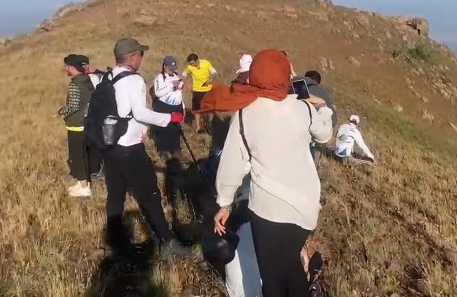 Bitlis'in Tatvan, Güroymak ve Ahlat ilçeleri arasında yer alan ve "Yeryüzü Cenneti" olarak adlandırılan 2 bin 800 metre yükseklikteki Nemrut Dağı'nda zirve yürüyüşü yapıldı.