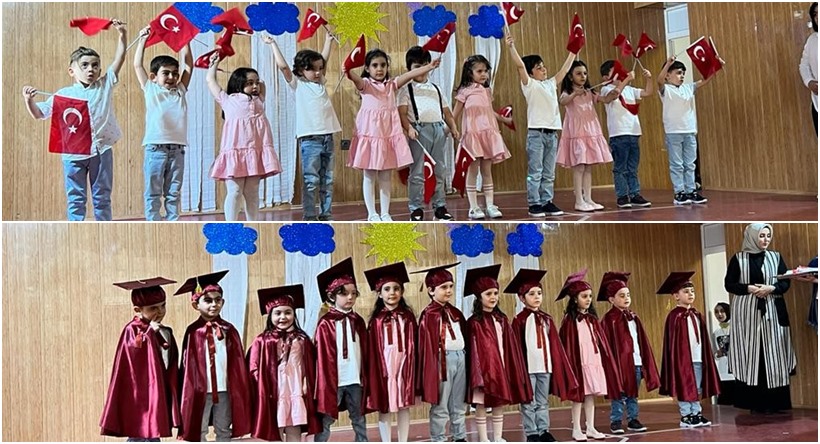 A sınıfı öğrencileri öğrendiklerini sergileme fırsatı buldukları mezuniyet töreninde söyledikleri şarkılar ve yaptıkları dans figürleriyle başta aileleri olmak üzere törene katılan davetlileri kendilerine hayran bıraktılar. Ayrıca ana sınıfından mezun olan minikler öğretmenleri Fatıma Betül Yılmaz’ın elinden sertifikalarını aldılar.