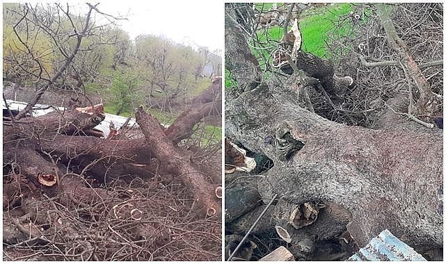 Yamaçtan kayan ağaç, İzzettin Ekinci’ye ait küçükbaş hayvan ağılının üzerine devrildi.