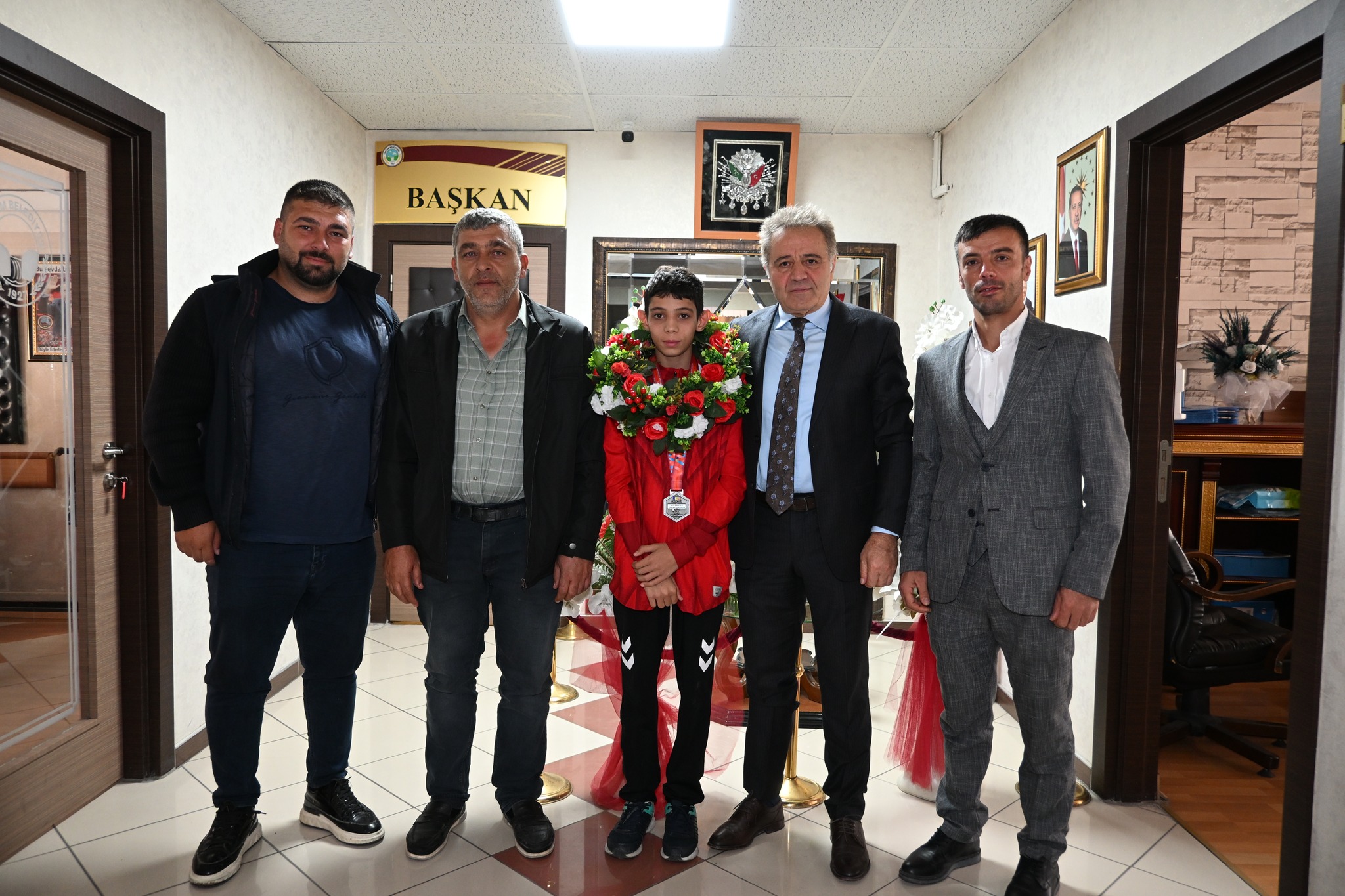 Şampiyon sporcu Utku Çağatay Sögütlü, Tortum Belediye Başkanı Muammer Yiğider’i ziyaret ederek başarısını paylaştı. Sporcuyu ve antrenörlerini tebrik eden Yiğider, altın hediye etti. Tortumlu iş insanları Gencağa Yücedağ ve Mehmet Mesut Kaya da, genç sporcuya iPhone 16 hediye ettiler.