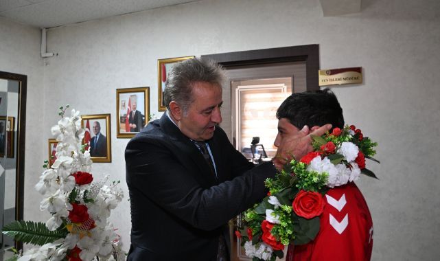 Şampiyon sporcu Utku Çağatay Sögütlü, Tortum Belediye Başkanı Muammer Yiğider’i ziyaret ederek başarısını paylaştı. Sporcuyu ve antrenörlerini tebrik eden Yiğider, altın hediye etti. Tortumlu iş insanları Gencağa Yücedağ ve Mehmet Mesut Kaya da, genç sporcuya iPhone 16 hediye ettiler.