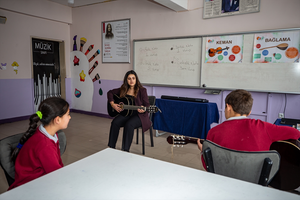 Öğrenciler, Aybüke öğretmenin izinde hem müzikle tanışıyor hem de büyüyünce müzik öğretmeni olmayı hayal ediyor.